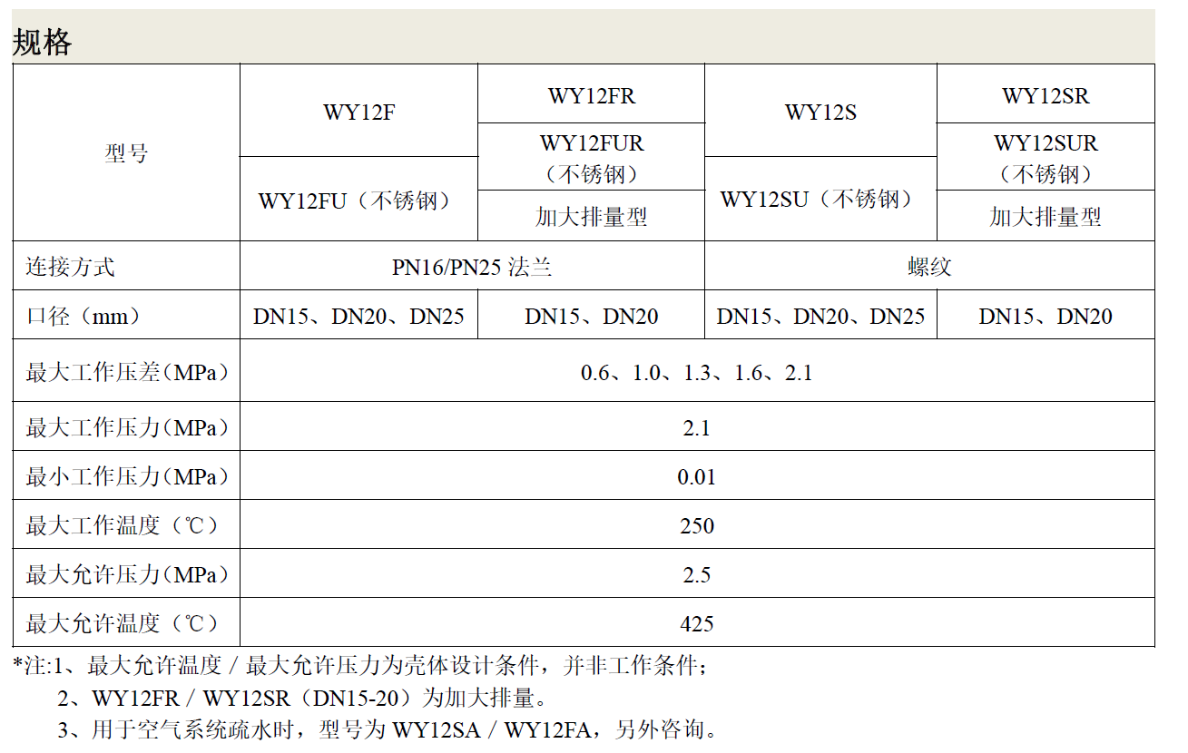 适用于主管、分汽缸、中小型换热设备疏水,此型号排量为300-1000kg/h