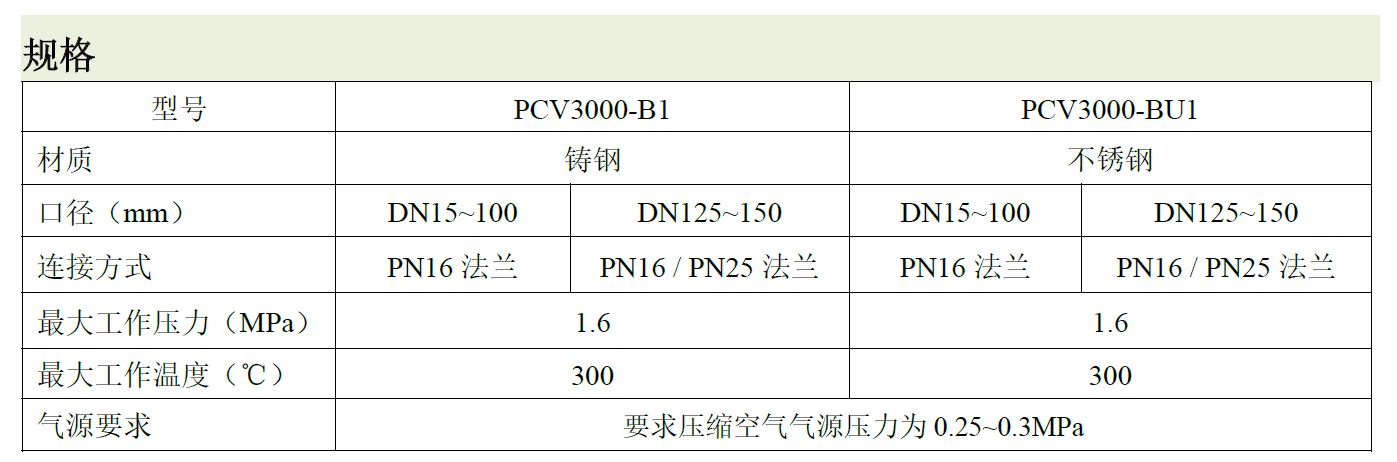 波纹管密封气动控制阀PCV3000-B1 / PCV3000-BU1