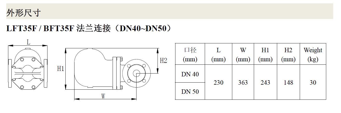 适用于大型换热设备疏水,LFT35F最大排量可达17t/h