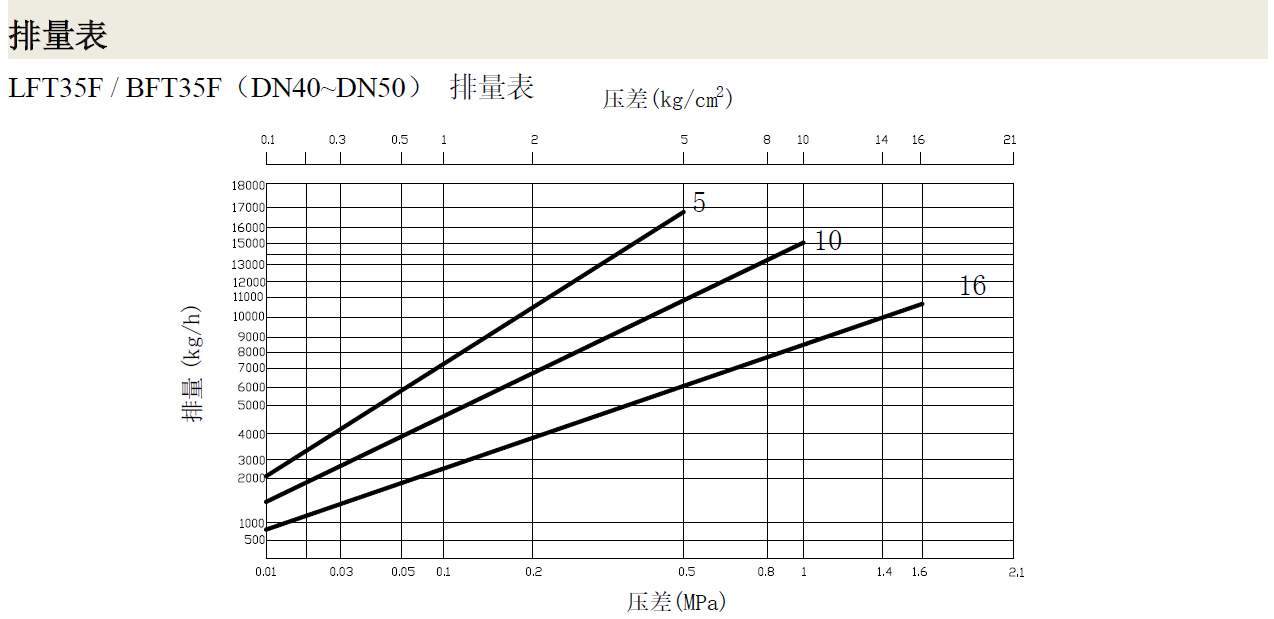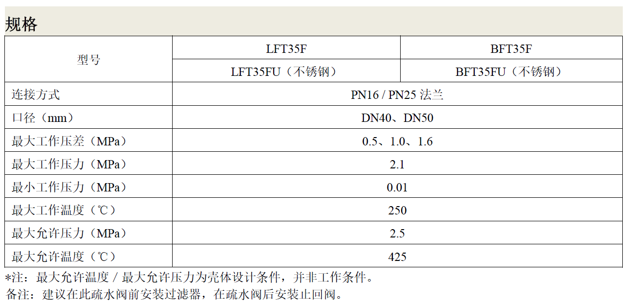 适用于大型换热设备疏水,LFT35F最大排量可达17t/h
